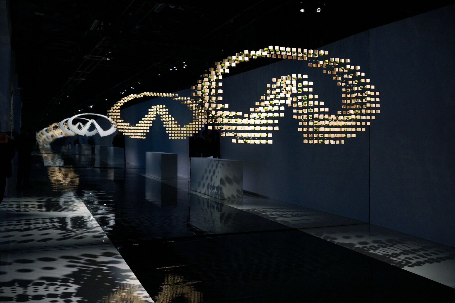 - Sight, represented by a sculptural exhibition featuring the brand’s logo greeting guests upon entry and by calligraphy artist Tomoko Kawao’s kanji characters of the INFINITI Japanese design principles Sho (speed), Sui (purity), and Kabuku (extraordinary).